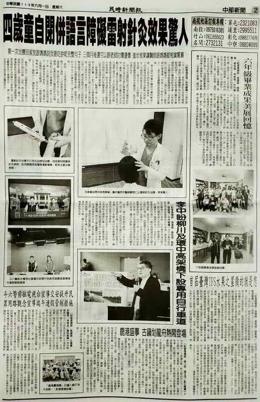 圖一:四歲童自閉併語言障礙,臺中醫院中醫師鄭惟仁以雷射針灸治療,效果驚人。