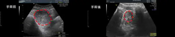 圖二:患者接受微創「子宮肌瘤微波消融術」後,肌瘤由如芒果大小(左)變成如小番茄般(右),困擾多年的症狀明顯獲得改善。