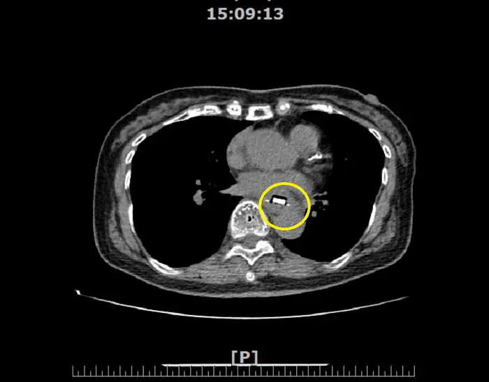 肝膽腸胃科黃耀光醫師表示,民眾常見誤食的異物有魚刺、雞骨頭或假牙,大部分的異物會自然排出,但少部分尺寸較大或較尖銳的異物可能會導致食道黏膜受傷甚至穿孔。穿孔可能引發縱膈腔炎或造成食道-氣管廔管或刺穿主動脈形成主動脈-食道廔管,未即時處置可能會有生命危險。黃耀光醫師表示,所幸這名患者誤吞的異物僅造成食道黏膜受傷,尚未造成穿孔等嚴重併發症。
