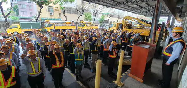 宣誓儀式現場,由電務副處長梁天旗帶領同仁齊聲高喊誓詞:「我們承諾,全力以赴,加強鳥巢清除,裸露設備被覆,改善線路弱點,確保供電穩定!」,現場氣氛莊嚴且充滿鬥志。