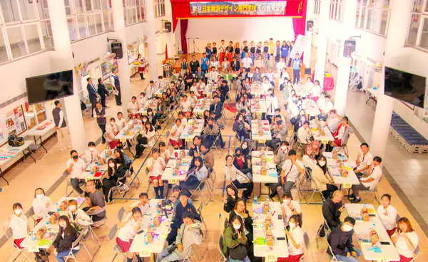 南投市市長張嘉哲此次也全程參與活動,並致贈日方在地特產南投意麵,推展南投美食特色。很肯定此次五育高中和日本新潟藝術設計專門學校的交流活動,不僅開拓學生視野並將南投推向國際,讓南投的孩子能向外國人展現自我,並且能將台灣和南投特色,向日方介紹交流,讓日本學生更加認識台灣的在地文化,非常難得,也希望五育高中能多與國外學校交流,讓學生更有舞台和眼界認識不同文化。中餐則由潮港城帶來美味BUFFET,菜品具備了臺灣文化的包容性,有大人小孩都愛的肉醬義大利麵、脆薯、咔啦雞塊及玉米濃湯,還有南洋風味的咖哩蟹身,養身的菌菇炊飯,當然一定要有的台灣味-客家炒米粉、古早味控肉、清炒高麗菜。透過美食,讓台日交流更顯豐富。