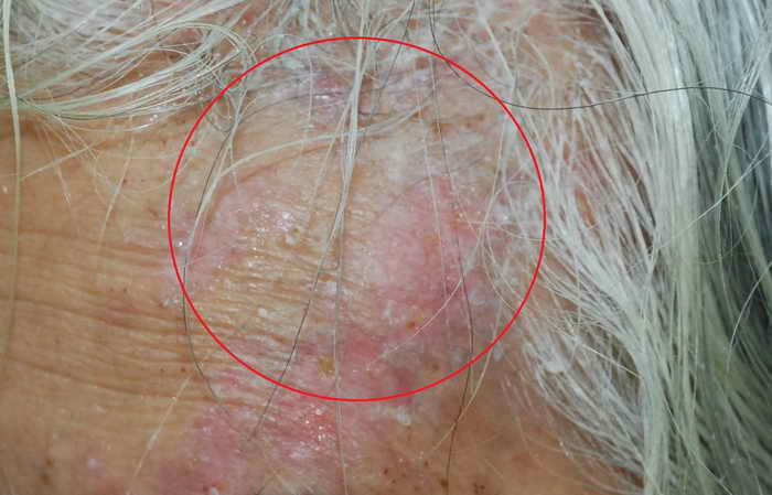 圖二:病患王先生額頭出現帶狀疱疹(圓圈處),經葛宗昀醫師治療後揮別疼痛困擾。