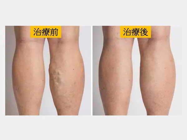 圖一:李阿姨腿部的靜脈曲張,透過「靜脈膠」治療的前後對照。
