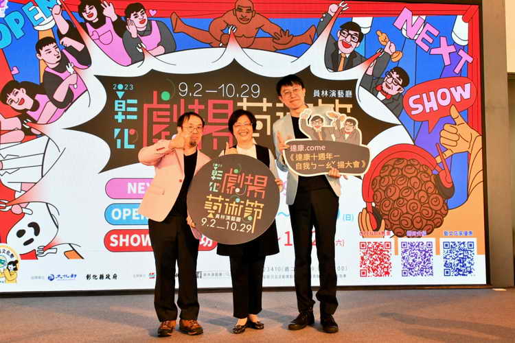 【記者張德欽、吳三伯、温玉沛/彰化報導】已邁入第10年的「彰化劇場藝術節NEXT OPEN SHOW」,9月2日起至10月29日將於員林演藝廳重磅登場!彰化縣文化局於1日上午於縣府中庭舉辦「2023彰化劇場藝術節」活動記者會,由彰化縣長王惠美介紹今年秋天在員林演藝廳的系列活動,將由國內6大優質團隊帶來5檔精彩演出、4檔工作坊及3場演後座談;會中由達康.come帶來精選漫才片段演出,現場笑聲與歡呼聲不絕於耳。