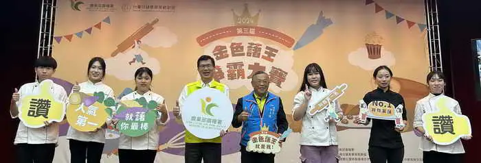 此次「金色藷王爭霸大賽」延續去年熱烈的回響,以甘藷特色為主軸,結合餐飲系學生的創意發想,將健康、美味及臺灣特色的甘藷轉化為具市場潛力的烘焙食品。來自全台各大專院校的24組優秀餐飲學生,經過嚴格評選與實地競賽,展現了甘藷在甜點與糕點製作上的無限可能。最終脫穎而出的前三名作品不僅獲得了獎金、獎座,更將由產業界業者進行量產合作,透過多樣化的銷售管道進行行銷推廣,讓甘藷產品更具商品價值、走進消費者的生活。