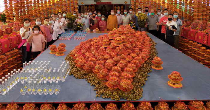 國曆110年10月10日台灣地圖壽生蓮花1800朶、往生蓮花1800朶、共3600朶蓮花、供品60桌、福圓、金銀財寶,排成台灣蓮花化生超拔、超渡台灣地祇主,超渡萬靈、蓮花化生,天佑臺灣、有形無形皆大歡喜、功德圓滿。農曆一百十年十月十日十點十分,陰陽乾坤定位和合十方圓滿、心門打開天賜福、念頭轉正真快樂,天生福祿富貴命 良時吉日天註定、天時地利人和齊備、大宇宙能量啟動、順應大自然、以中道正義的力量由下而上、貫穿天地陰陽、發揮民衆力量、展現中道精神、契合大自然,混元一炁、大門開,兩儀在、三清來,五方界、十方全,天地開、天開、地開、十方全2,轉三次 蓮花轉 轉入來、心內歡喜笑哈哈 心蓮開、中華民國國運開,開天門金蟾天水下降、富國利民、天佑臺灣、福佑蒼生,俗語有云,「鳳凰非梧桐不棲,金蟾非財地不居」,金蟾所居之地,都是聚財之寶地,金蟾為旺財聚寶盆。金蟾所到之處,那裡的人都必定會富庶起來,金蟾是有名的旺財瑞獸、招財進寶,財源滾滾。感謝天、感謝地、感謝阿娘加老爸、感謝咱大家,感謝、感恩衆神仙佛聖、十方大德幫忙協助、感恩、感恩、感恩、再感恩、無限感恩,十方功德圓滿。