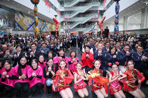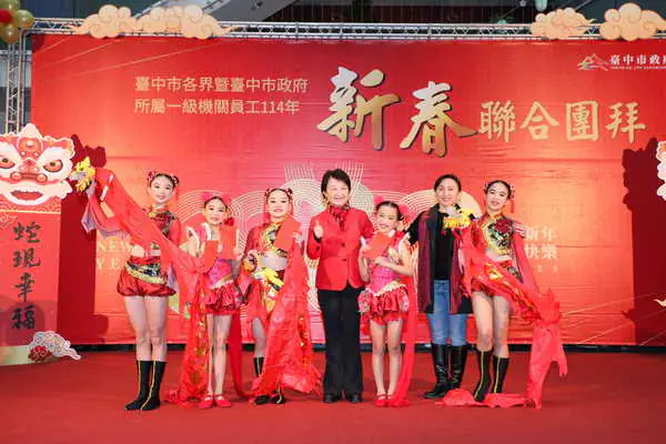「台中市各界暨台中市政府所屬一級機關員工114年新春聯合團拜」今日在市府台灣大道市政大樓惠中樓1樓,現場超過1,000位市政顧問、市民家人及同仁齊聚一堂,熱鬧開工。盧市長表示,今年是金蛇年,金蛇靈動、幸福台中,祝福台中市政昌隆,台中是我們的家,286萬的市民朋友是我們的家人,去年台中在民調票選中是最幸福的城市,期勉5萬多名公務同仁繼續堅守崗位,未來市府將繼續努力,守護與建設台中,成為市民最堅強的後盾。