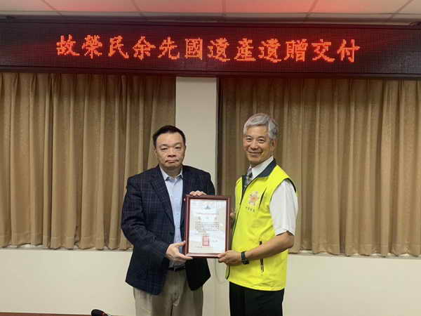 榮家呂德義主任指出,余先國老先生一生漂泊,居住在榮家期間省吃儉用所累積的存款,預立遺囑全數捐贈中華人權協會,他為爭取基本人權拋磚引玉,盼望能將自由人權信念不斷地傳遞到社會每個角落,並永久存留。