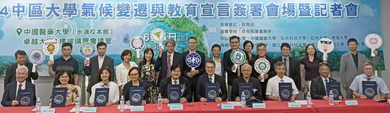 中部地區10所大學在中國醫藥大學聯合簽署2024「中區大學氣候變遷與教育宣言」,共同攜手合作推動氣候變遷教育和永續發展與實現淨零碳排放的承諾,同時展示各校的亮眼績效和重要成果1