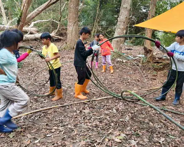 這次課程由中年級學生背起裝備,循著祖先遷徙與生活的路徑走入山林,也是學校第8次帶領學生回到祖居地,林業保育署南投分署派出熟悉補藤社歷史的森林護管員陪同引導解說。課程內容包括家屋遷移脈絡認識、河谷生態觀察、山林夜間觀察、野外烹煮及生活實作等,讓學生在實地行走與體驗中,理解祖先如何依循山林節律生活。