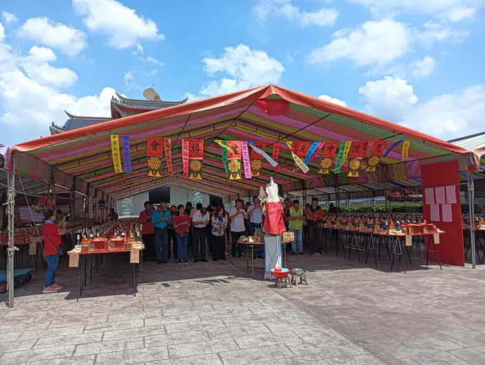 【記者張德欽、張珊瑜、洪凱強、張祐瑄/南投報導】位於南投縣草屯鎮碧洲里的全省最大修緣觀濟公廟於國曆八月二十四日(農曆七月二十一日)下午一時特舉辦「祈安植福慶讚中元蘭盆勝會」,由觀主簡榮梁主持開香,立法委員馬文君、草屯鎮長簡景賢、南投縣議員簡峻庭、副主任委員李金助、楊月幼、黃有釧伉儷、史祝賢伉儷、簡漢鐘伉儷、馬英傑伉儷、洪凱強暨全體委員省府員工福利社總經理簡松茂伉儷及與會人士、大宇宙新聞時報社長張德欽、也是中華民國資深記者協會常務監事、彰化縣新聞記者公會常務監事、中華文化經貿生技交流協會監事及各電視台、廣播、平面媒體記者貴賓均到場共襄盛舉,召請陰間好兄弟、誦經禮懺、聽經聞法,普渡近五百桌及米糧、金銀財寶,誠心奉敬,勝會於下午五時,功德圓滿。