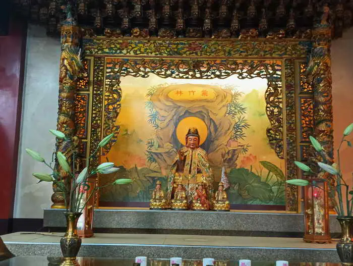 手持大蒲扇,瘋瘋顛顛,是「濟公活佛」的標誌。他的那把大蒲扇似乎有無窮的法力,濟公活佛借顛度人、濟世,不拘於形式而獨具一格。對這位善詩文,不畏強暴,濟困扶危,相助弱小的和尚,受到世人的欽仰與敬愛,享受人間香火奉祀至今而不衰,修緣觀正殿觀頂就是一支大蒲扇。