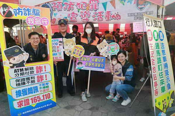 縣府警察局草屯分局為提高民眾反詐騙知能,也在會場擺設宣導攤位,民眾踴躍參與,另交通安全及婦幼宣導攤位也吸引民眾前往了解。