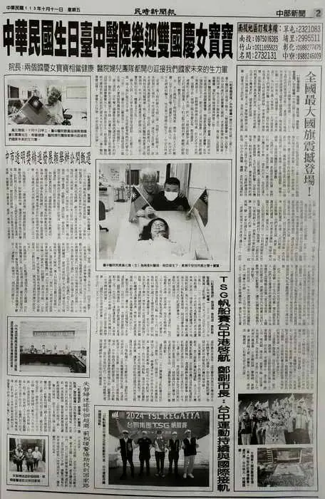 盧市長也提到,山陀兒颱風一結束,台中市政府的救援隊立刻出動,分別前往高雄、基隆協助救災,明天還會加派交通局隊伍,前往高雄協助修復紅綠燈等號誌,讓高雄市民早日恢復正常生活。她想告訴大家,天災也許沒辦法百分之百防止,但只要我們秉持同島一命的精神,保持對國家、社會、人民的熱愛,一定可以共度難關。我們要更忠誠、熱愛、珍惜、保護我們的國家,相互尊重並團結,祝福中華民國生日快樂、盛世太平,台灣更好。