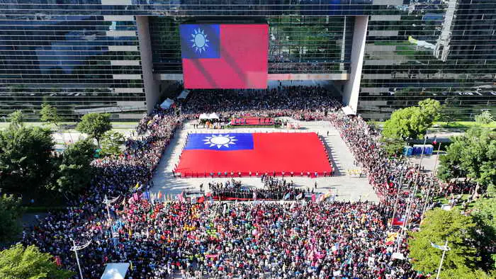 圖:全國最大國旗震撼登場! 2萬人齊聚府前廣場慶雙十 盧市長:台中榮光、閃耀國慶
