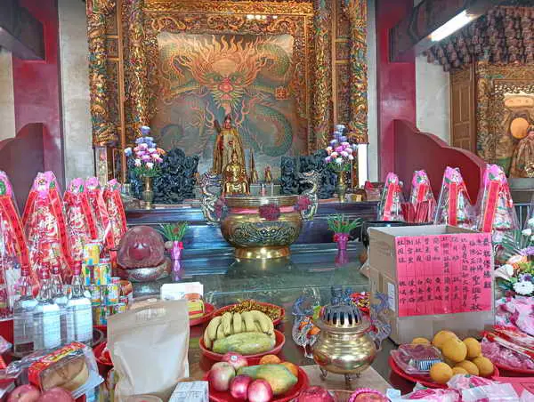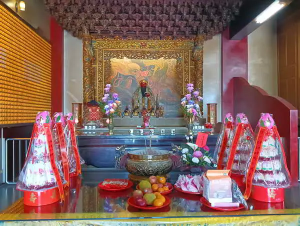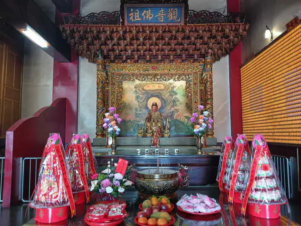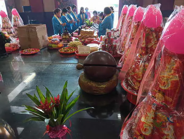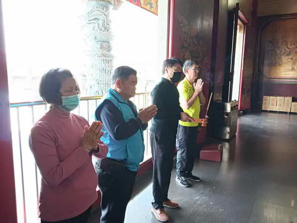 圖文:敬備鮮花、水果、壽麵、壽桃等等供品為修緣活佛聖誕祝壽,為福德正神聖誕千秋祝壽,主任委員簡榮梁帶領全體人員上香為修緣活佛聖誕祝壽。