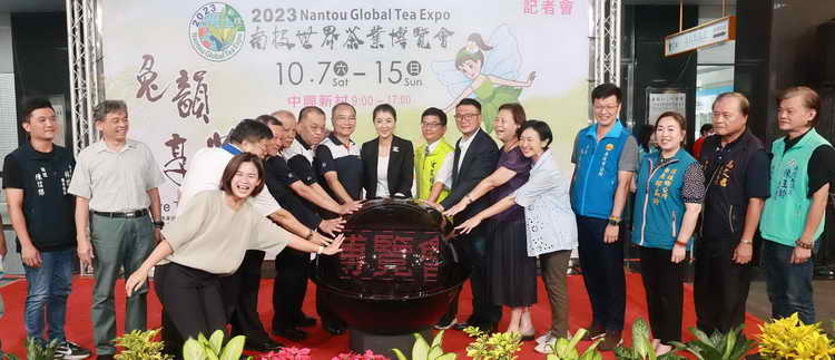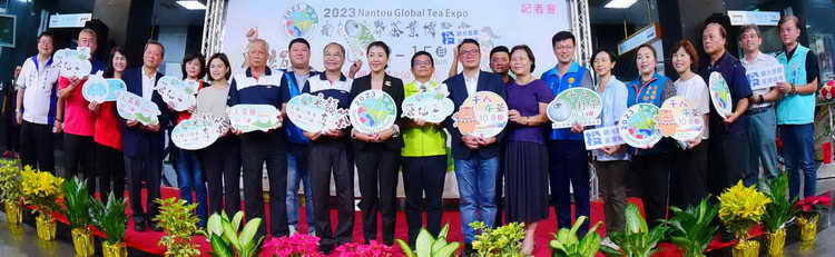 縣長許淑華26日上午在縣府一樓大廳主持2023「南投世界茶業博覽會」記者會,與副縣長王瑞德、農業部農糧署副署長蘇茂祥、縣議員陳淑惠、宋懷琳、游顥、簡千翔、林友友、南投市長張嘉哲、國姓鄉長邱美玲、仁愛鄉代表會主席洪文全、縣農會總幹事曾明瑞、鹿谷鄉農會理事長陳文益及13鄉鎮市農會總幹事一同宣佈第13屆南投世界茶業博覽會10月7日正式啟動。