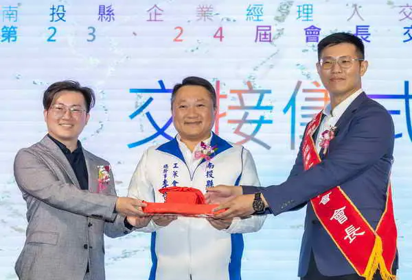 【記者張德欽、張珊瑜、林大森、蔡瑛芝/南投報導】南投企業經理人交流協會12月17日在草屯成都婚宴會館,舉辦「第23、24屆會長交接典禮」,縣長許淑華到場及與會貴賓一同觀禮。交接儀式由工策會總幹事李哲華擔任監交人,卸任理事長葉光哲將會長彩帶及印信交接給新任會長施宜廷,施會長並介紹新任幹部,過程簡單隆重。