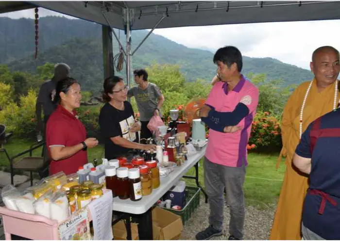 和興村長孫瑞娟、社區理事長羅文權、總幹事游源澤、淨土寺住持慈源師父、開元宮清靜師姐、鄉親們、善信大德、及社區樂齡鑼鼓隊表演助陣、向眾神佛祈福國泰民安、風調雨順、世界和平、百姓安康。和興村四時無災八難遠離、萬事吉泰。由理事長、總幹事、村長一起帶領中寮和興石虎生態園區農作推廣。有賴在這裡咖啡、中寮李家咖啡、草本植物養身的推廣由王朝森的來則旺草本生態園區提供。理事長帶領往節能減碳方向前進、達到永續共融。結合天鷹嶺觀景臺對外推廣觀光。開元宮清靜師姐特別感謝。素食推廣愛心義工、志工團隊辛勞付出、讓大家體會素食美味節能減碳又健康的理念。