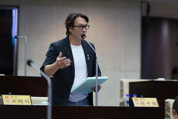 圖文:南投縣議員簡千翔在縣議會總質詢指貓羅溪幾乎年年淹水 河川整治刻不容緩。
