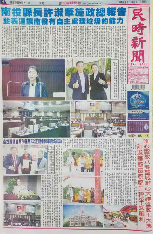 許縣長指出,南投縣垃圾長年仰賴其他縣市協助處理,最根本的解決辦法是自己要有垃圾處理能力,她4月25日率縣府團隊,偕議長何勝豐、副議長潘一全等28位議員,赴苗栗縣觀摩垃圾焚化廠,見證焚化廠無臭味、無汙染的技術,但要興建焚化廠最重要的就是先讓建廠所在地居民能安心,縣府已尋覓到數個方圓數里內無人居住的合適地,待概估作業流程、行政程序、擬定回饋機制、規劃未來環境衛生後,再向議會報告方案,並與當地鄉鎮市長及居民溝通,進行土地變更、開發等進一步評估,希望議會全力支持。