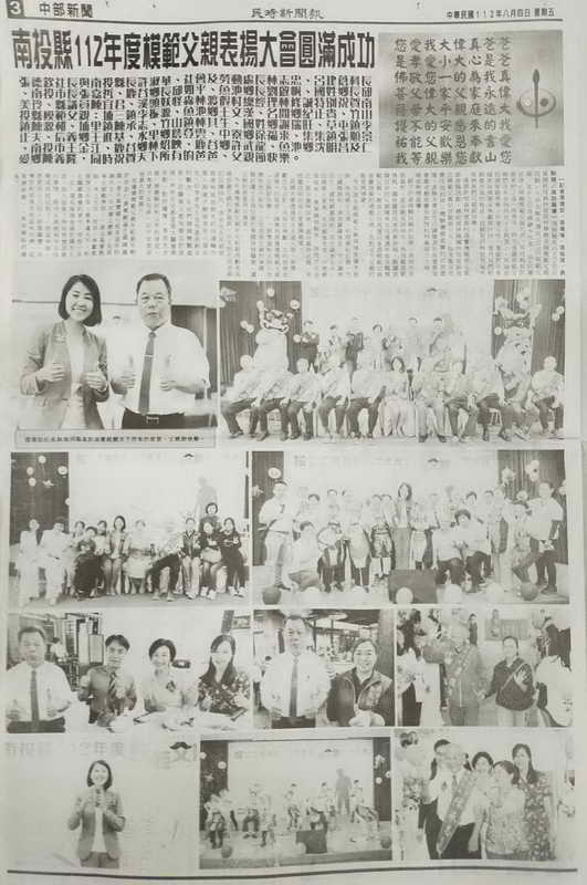 除了許淑華縣長親自出席,南投市長張嘉哲、鹿谷鄉長邱如平、魚池鄉長劉啟帆、國姓鄉長邱美玲都到場,縣議員陳宜君的父親陳承志也獲選年度全縣模範父親,她也上台表達以身為模範父親家屬為榮的感動心情,及對天下父親的敬意與感謝。
