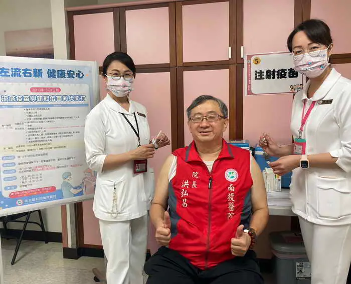 【記者張德欽、張珊瑜、張耿慈、趙志剛/南投報導】流感疫苗及新冠疫苗於今(1)日起同步開打。衛生福利部南投醫院在十月份起提供符合階段公費資格的民眾疫苗接種服務,該院洪弘昌院長也率先接受疫苗接種,鼓勵民眾踴躍接受施打,提升整體保護力。
