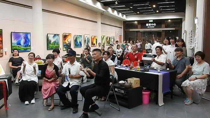 原甫流彩水墨畫展茶會高朋滿座大師現場揮毫3幅流彩畫深受讚賞