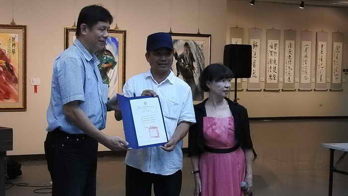 【記者張德欽、張珊瑜、王德寬、許麗秀、林荐丞/雲林報導】原甫流彩水墨畫展即日起至7月29日在雲科大圖書館藝術中心舉行,展覽開放時間週一至週六0900-1700(週日及國定假日、連假休館), 6月29日下午2點舉辦茶會,首先有許桂才洞蕭演奏,劉大師現場揮毫3幅流彩畫,大家聽原甫是如何創作,如何堅持又固執走這樣創作方向及其過去拜師學藝之往事!感謝各界致贈之花籃及祝賀墨寶,提到當年他在台北戶外作畫張大千帶3位外國人來看、一位外國人馬上要買他的作品,初出茅廬之他不知道要講多少錢,張大師手比五,依他表示當時註冊費才3千對方給5千他也很滿意,如今在現場展示聽說最少皆要5位數起跳。桃李滿天下,6年前亦曾經在此展出過深受讚美,長官及來賓分別受邀致詞,雲科大致贈感謝狀,現場有茶席奉茶,溫馨滿堂。