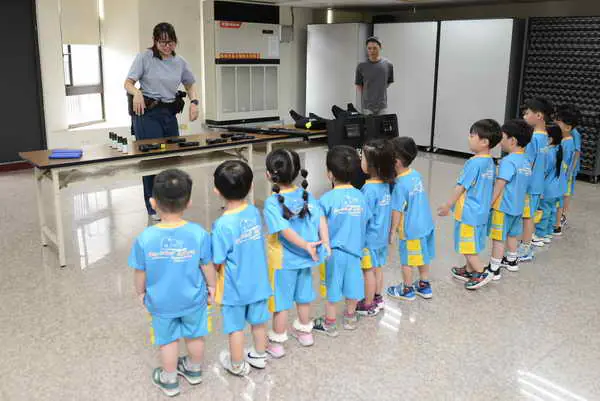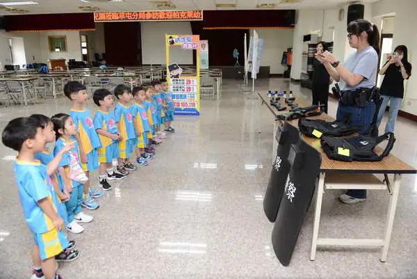 本次參訪學生多為幼兒園中、小班年紀,分局安排婦幼、交通安全、防詐騙、反校園霸凌宣導,另針對該年齡層設計宣導內容與徵答題目,並播放宣導影片告知小朋友絕不能在沒有家人陪同下獨自出門;過馬路要行走於行人穿越道,不只要遵守交通規則更要隨時注意周圍人車狀況;平時與家人都要小心提防詐騙訊息及陌生人誘騙。每段宣導內容均安排有獎徵答活動,小朋友們踴躍搶答,氣氛熱絡,雖然有時童言童語回答令人莞爾,但在現場員警及老師耐心說明下,也實際展現寓教於樂的意義,讓各種正確法治與人身安全觀念紮根。緊接著在分局人員的導覽下,逐一解說警用手槍、防彈背心等裝備的用處,並提供練習用裝備讓學童們親身體驗,孩童難得接觸警用裝備都感到稀奇,直呼警察裝備好帥!此外也陸續前往分局內各單位參訪,了解警察勤務運作,史蹟室內各年代警察制服與警用裝備,更是讓小朋友們大開眼界;拘留所則讓孩子們不禁萌生好奇與敬畏,員警也利用這機會引導正確觀念;警車體驗則帶給孩子獨特聲光感受,展現各種的警笛聲及警示燈用途。副分局長吳碧芬也特別到場與孩子互動,自稱阿嬤的吳副分局長讓孩子們備感親切,忙著分享這一天所見所聞,活動也在歡樂合影中結束。