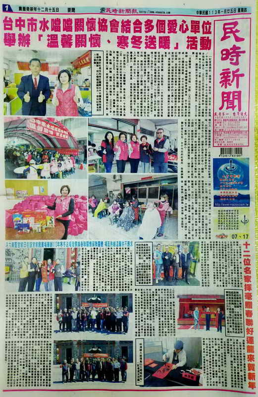 台中市水噹噹關懷協會結合多個愛心單位 舉辦「溫馨關懷、寒冬送暖」活動
