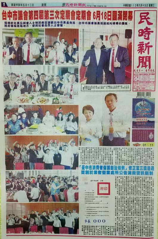 圖文:張德欽社長及與會人士特別肯定讚賞台中市長盧秀燕、台中市議會議長張清照所領導的團隊、用心積極造福地方,受到社會各界人士掌聲。