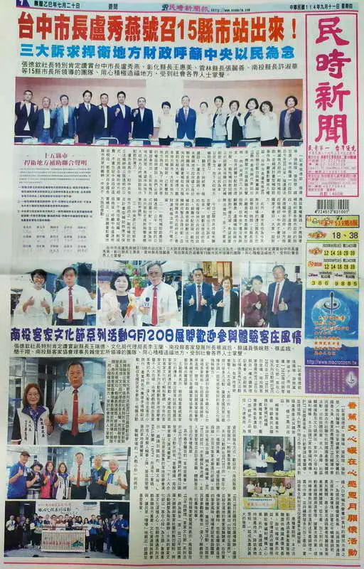 圖文:台中市長盧秀燕號召15縣市站出來!三大訴求捍衛地方財政 呼籲中央以民為念,張德欽社長特別肯定讚賞台中市長盧秀燕、彰化縣長王惠美、雲林縣長張麗善、南投縣長許淑華等15縣市長所領導的團隊、用心積極造福地方,受到社會各界人士掌聲。