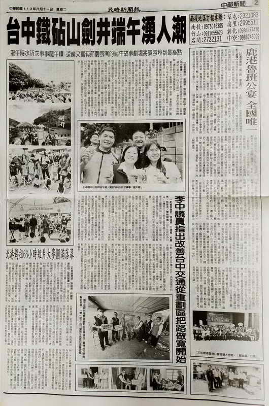 觀旅局長陳美秀表示,取午時水和佩戴香包兩項端午節常見習俗,具有避邪保平安意涵,在活動當天尚未領到的朋友也別擔心,今日正式開跑的「找端午習俗 抽端午雙寶」線上活動,特別準備限量的午時水紀念瓶與香包要送給大家,共有20組,只要在6月13日17時00分前,前往「台中市風景區管理所」臉書粉專按讚活動貼文,並留言回答正確答案、標記兩位朋友,即可參加抽獎,歡迎大家踴躍參加。