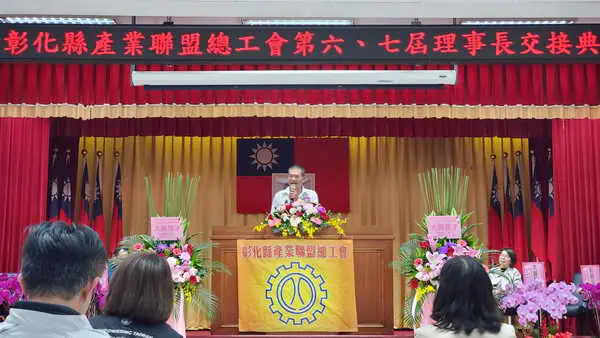 【記者張德欽、吳三伯、温玉沛/彰化報導】彰化縣產業聯盟總工會發展再創新頁!台灣電力工會第14分會常務理事顏允賜當選彰化縣產業聯盟總工會第七屆理事長,交接典禮1月9日於台電彰化區營業處隆重舉行,現場貴賓雲集,氣氛莊重熱烈。典禮由彰化縣政府勞工處處長何俊昇主持監交,現任理事長、同時也是台糖公司彰化企業工會理事長的張俊平,正式卸下肩上重擔,將職務交棒給新任理事長顏允賜,為工會運作揭開嶄新篇章。