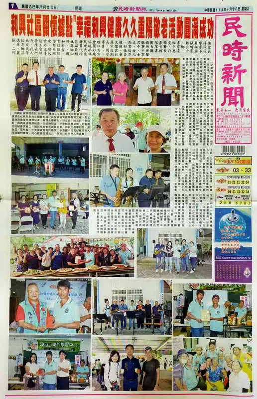 和興社區關懷據點“幸福和興健康久久重陽敬老活動(一),結合敬老、感恩、健康、樂活為主題,九九重陽.敬老傳情,幸福久久.長青樂活,弘揚敬老尊賢的傳統美德,鼓勵長輩走出家門、參與社區活動,提升長輩的健康與生活幸福感,促進跨世代互動,凝聚社區情感,感謝尚素食分享團隊(中午供餐)、南投縣家庭照顧者關懹協會(義剪)、南投縣光明文教慈善協會(推拿)、南投縣上元慈善關懷協會(薩克斯風演奏)、慈瑩慈惠堂(物資捐贈)、中寮衛生所設立(社區接種站)、中寮圖書館(好書分享)、中寮分駐所(防詐宣導)、龍安數位機會中心(行動諮詢櫃檯)、中寮咖啡班(在地咖啡分享),感謝社會各界人士共襄盛舉。