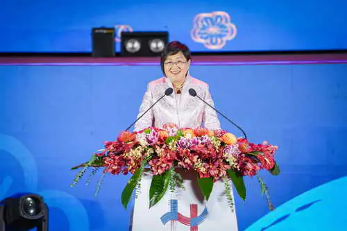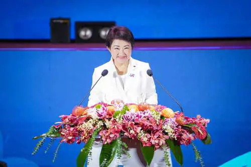 僑務委員會委員長徐佳青致詞時,首先感謝來自全球的僑胞朋友,特別自費、專程返國參加國慶活動,如同花蓮縣「鏟子超人」無私無悔的奉獻,也正是這樣的精神,國家才能持續往前邁進;台灣的民主價值、經濟成就也讓非常多僑胞感到自豪,在國際上「走路都有風」!越來越多國際朋友想學華語、想來台灣工作,台灣這兩個字已經是品牌的象徵。