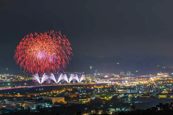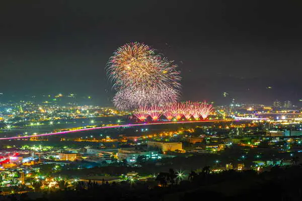圖文:國慶焰火在南投 逾4萬發焰火照亮夜空,高喊中華民國生日快樂。