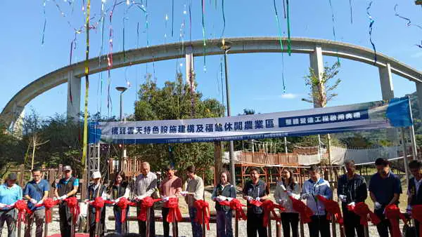 南投縣政府6日在國姓鄉國道6號國姓交流道下方,舉行「橋聳雲天特色設施建構及福龜休閒農業區整體營造工程」啟用典禮,縣長許淑華親自主持,並和地方民代、鄉親一起見證這座投資2,588萬元的好地方,可以做生態體驗,也能山訓挑戰,適合全家遊玩。