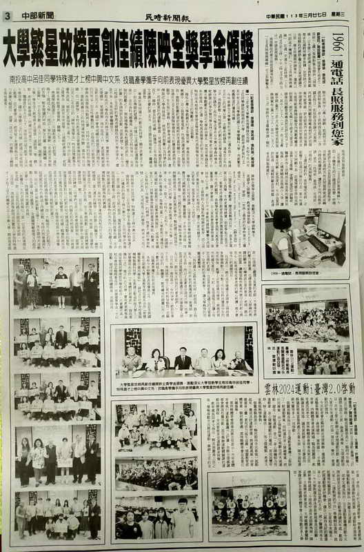 圖文:大學繁星放榜再創佳績 陳映全獎學金頒獎,激勵頂尖大學弱勢學生 南投高中呂佳同學,特殊選才上榜中興中文系!技職產學攜手向前表現優異 大學繁星放榜再創佳績。