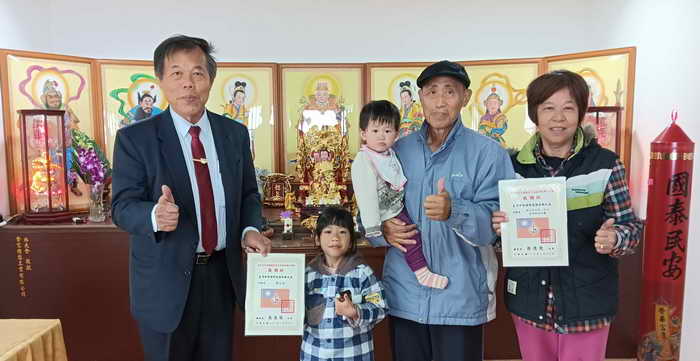 中寮鄉長廖宜賢、建設課長林文遠,中寮鄉代表會主席游如村、副主席蘇如輝及所有代表,清水村村長卓金棟及所有村民,和興村村長孫瑞娟、游冬郎等所有村民。張銀水、張林菊花、廖繼志、鄭錦梅、白文貴、林進殿、廖淑子、張珊瑜、張耿慈、蘇俊廷、張祐瑄、蘇尹柔、洪凱強、林大森、林慶文、林昌永、江萬昌、蔡瑛芝、趙志剛、游雅嵐、吳三伯、溫玉沛、王為楷、溫承鈺、黃園琳、王德寬、林宥富、廖俊宇、官庭瑪、許麗秀、林荐丞,邱森輝、陳朝廷、張文昌、楊添貴、陳廷淳、詹素球、詹昭榮、陳泓銘、洪慶宗,劉仁慈檢察官、朱兆民檢察長、莊志文書記官長、李孟珍、張秋遠、林宗材等主任觀護人、羅馨蓓、王俐蘋、簡蕾如等觀護人。【何富榮(已故)、黃春梅老夫妻緣起大功德主】。鄭雅庭、洪明鑫、林志忠處長、總福營造股份有限公司、合庫營造股份有限公司、山力營造股份有限公司。