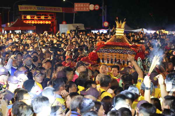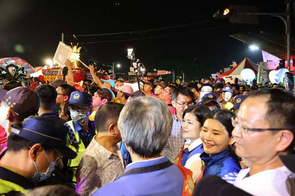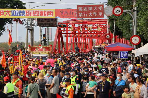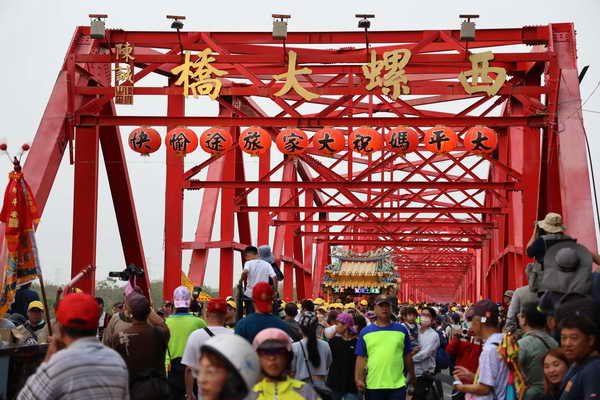 今年大甲媽祖遶境活動碰上清明連假,參與人潮暴增,大甲媽祖鑾轎延遲直到晚間將近8點才抵達西螺大橋,張麗善縣長率縣府團隊與鎮瀾宮董事長顏清標、西螺鎮長廖秋萍等扶轎緩緩進入雲林縣境。