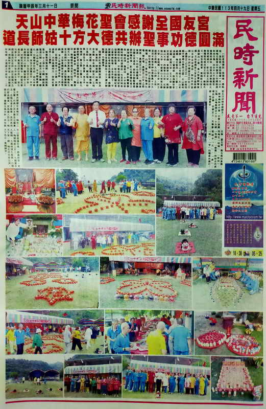 圖文:天山中華梅花聖會 感謝全國友宮道長 師姑十方大德共辦聖事 功德圓滿。