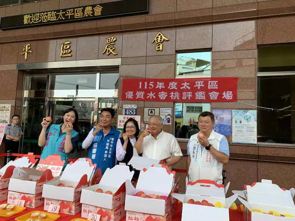 【記者張德欽、張珊瑜、張祐瑄、張耿慈、趙宏進/中市報導】台中市政府農業局輔導太平區農會於4月22日在該會舉辦「115年度台中市太平區優質水蜜桃果品評鑑活動」,推廣台中優質水蜜桃,提升平地水蜜桃果品品質,此次評鑑共31組農友報名參賽,並由農友柯聰明勇奪冠軍,成為今年度的平地水蜜桃達人。