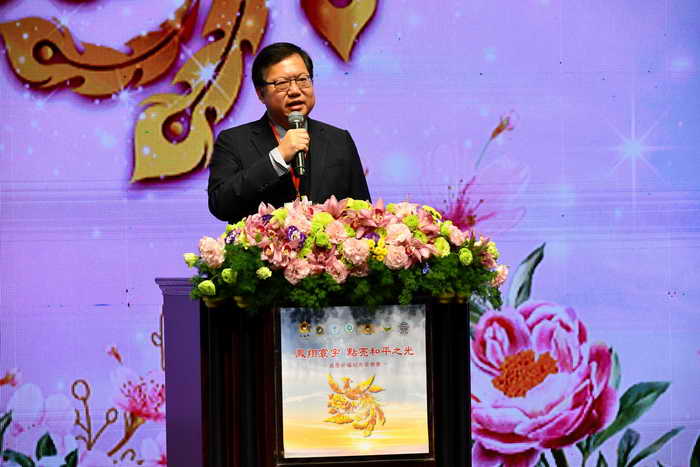 當天洪掌門人在致詞時表示,「我的夫人一直以來都以陽光、正向的態度面對生命中的各種挑戰,她的勇氣、愛和溫暖永遠留存在我們的心中,化作永恆的存在。因此今日,我們用點亮世界和平之光的行動,邀請諸位共同為我們的世界祈福。」