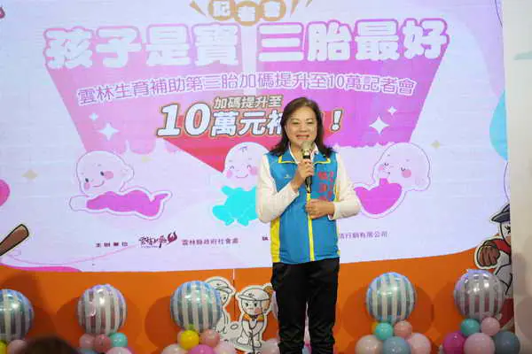 社會處長林文志表示,少子化不僅是家庭問題,更是國安問題。中央政府今年起已將每胎生育補助提高至最高10萬元,不論是否參加勞保、農保、軍公教或國保,皆可申請。雲林縣政府則進一步針對第三胎加碼補助至10萬元,這項補助不會與中央補助互斥,是可曐加請領,中央與地方的補助都可領到。