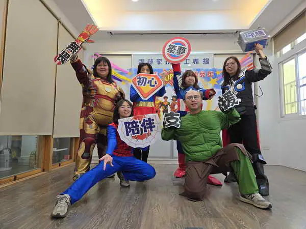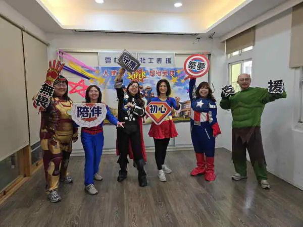 雲林家扶廖志文主任感謝社工英雄背後的靈魂人物~「神盾局長」陳燦勳主委,謝謝陳主委為「英雄們」戴上專屬能量配件並頒發獎勵;還有吳裕田副主委送來帶來的「滴雞精」,支持社工們在助人工作歷程中,全方位照顧看見社會每一個角落,家扶社工雖然沒有披風、沒有超能力,卻總是在最需要的時刻出現,溫暖及幫助家庭,陪伴每一位兒少成為自己的「英雄」。