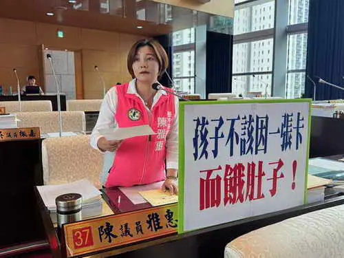 【記者張德欽、張珊瑜、張祐瑄、張耿慈、黃園淋/中市報導】台中市推動「安心午餐券」原意是保障弱勢學童假日有飯吃,但市議員陳雅惠痛批,部分學校行政延宕,導致學生9月延誤6餐,損失達390至450元,更有小一新生因數位學生證延後發放,假日空窗13天領不到餐券,形同剝奪溫飽。市長盧秀燕承諾若屬行政不彰將嚴辦,教育局則允諾立即盤點補救。