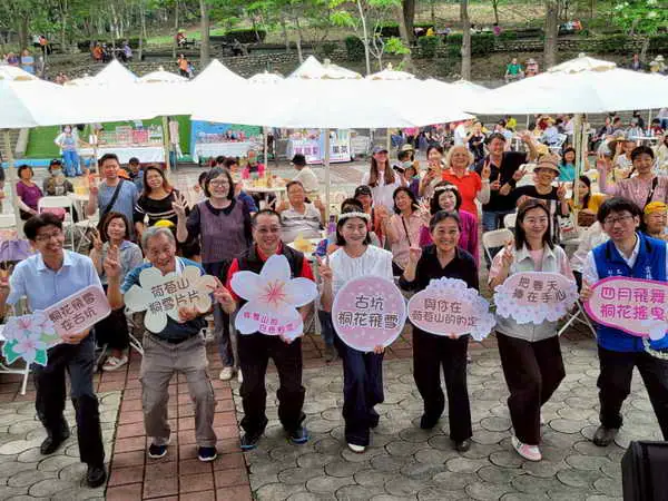 除了舞台演出,現場亦規劃豐富的五感體驗活動,結合視覺、聽覺、嗅覺、味覺與觸覺,讓遊客不只是賞花,更能深度參與。其中推出「滿額體驗活動」,民眾於現場消費滿200元,即可擇一參加彩繪紙傘、似顏繪、彩繪臉部、客家粢粑品嚐等體驗,將文化創意與互動樂趣帶回家。此外,活動結合在地小農市集,展售古坑特色農產品與咖啡,並安排專業單位進行桐花生態解說,讓賞花不僅是視覺享受,更兼具知識與教育意義。