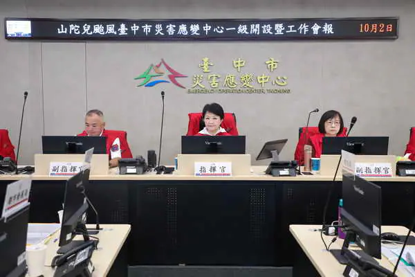 【記者張德欽、張珊瑜、張祐瑄、張耿慈、趙宏進/中市報導】因應強颱山陀兒來襲,台中市災害應變中心10月2日早上9時進行山陀兒颱風一級開設工作會報。市長盧秀燕主持表示,山陀兒颱風龜速再龜速,目前預估10月3日早上7至9時從台南登陸,影響中部地區的時間恐延後,呼籲市民朋友勿輕判颱風威力,今日風勢轉強、天氣轉陰,切勿從事戶外活動。山陀兒颱風恐漸進式襲台,市府將持續加強戒備。